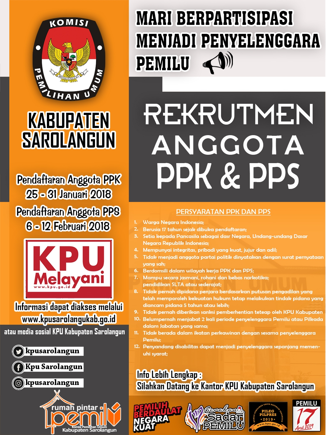 KPU Sarolangun Membuka Rekrutmen Panitia Pemilihan Kecamatan (PPK) dan Panitia Pemungutan Suara (PPS) untuk Pemilu 2019
